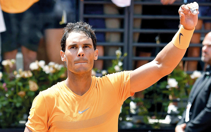 تأهل الإسباني رافايل نادال، المصنف الأول، إلى نصف نهائي دورة روما الدولية لكرة المضرب، خامسة دورات الماسترز للالف نقطة، لأول مرة منذ أربع سنوات، بعد فوزه أول من أمس في ربع النهائي على الإيطالي فونييني، 4-6 و6-1 و6-2، فيما احتاجت الروسية ماريا شارابوفا إلى فوز ماراتوني لبلوغ الدور ذاته.