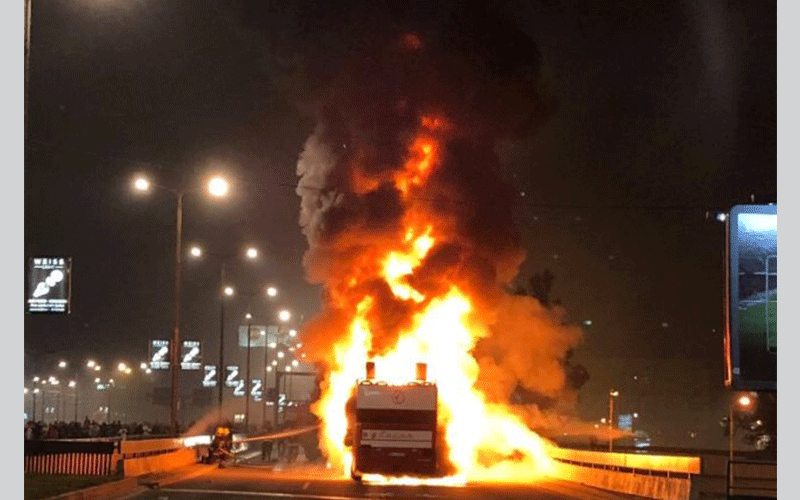 بالصور.. مشجع يشعل النيران بحافلة فريقه بالخطأ