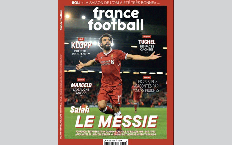 تصدر النجم المصري محمد صلاح، المحترف فى نادي ليفربول الإنجليزي، غلاف مجلة "فرانس فوتبول" الفرنسية، وذلك قبل أيام قليلة على انطلاق المباراة النهائية بمسابقة دوري أبطال أوروبا والتي تجمع بين ناديي ليفربول وريال مدريد الإسباني بمدينة "كييف" الأوكرانية.