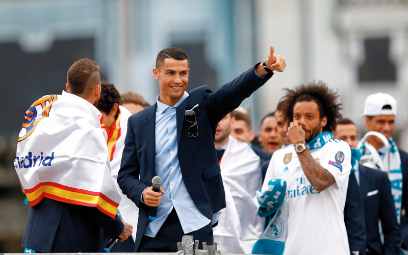 وخلال الاحتفالات، أول من أمس، بتتويج ريال باللقب الأوروبي في مدريد، توجه رونالدو، أفضل لاعب في العالم خمس مرات، الى المشجعين بالقول «إلى العام المقبل»، في خطوة اعتبرت الصحافة المحلية أنها تضع حداً للشكوك حول مستقبله مع النادي الذي انضم إلى صفوفه في العام 2009.