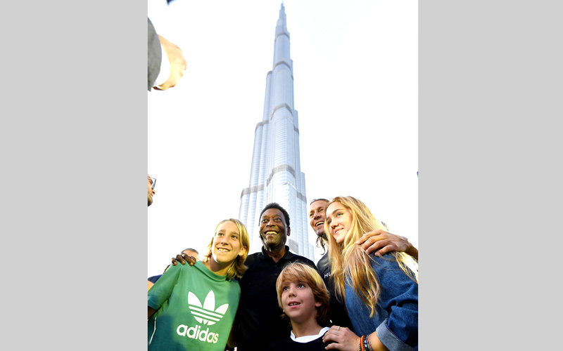 بيليه خلال زيارته إلى دبي في أبريل الماضي. تصوير: باتريك كاستيلو