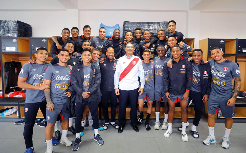وقبل رحيله استقبل المنتخب، رئيس بيرو مارتين فيزكارا، الذي تمنى لمجموعة اللاعبين حظاً طيباً، وأهدى العلم الوطني لمدافع الفريق البرتو رودريجيز، الذي كان يفترض أن يكون قائد بيرو بدلا عن النجم جيريرو، الموقوف، إلا أن الأخير حصل على الموافقة باللعب بقرار من محكمة سويسرية.