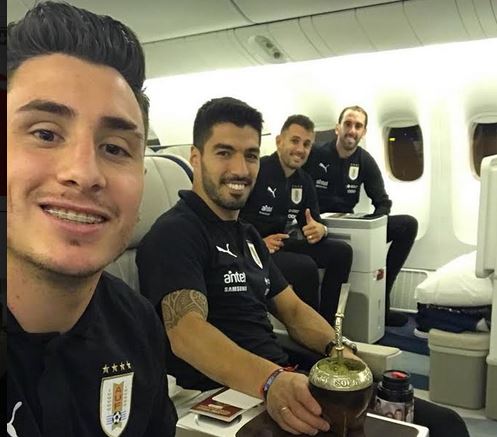 ظهر مهاجم مادي برشلونة وقائد منتخب الأوروغواي لويس سواريز وهو يشرب المتة على متن الطائرة التي أقلت بعثة منتخب بلاده إلى روسيا للمشاركة في كأس العالم، والتي يستهلها منتخب الأوروغواي بلقب مصر يوم الجمعة المقبل.