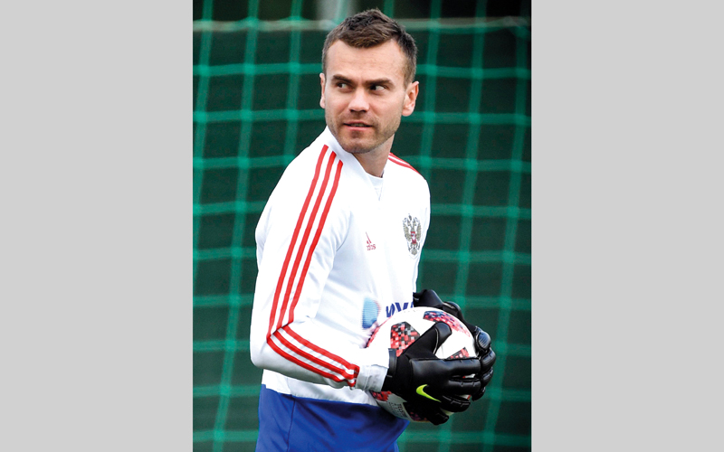 حارس المنتخب الروسي إيغور أكينفييف. أ.ب