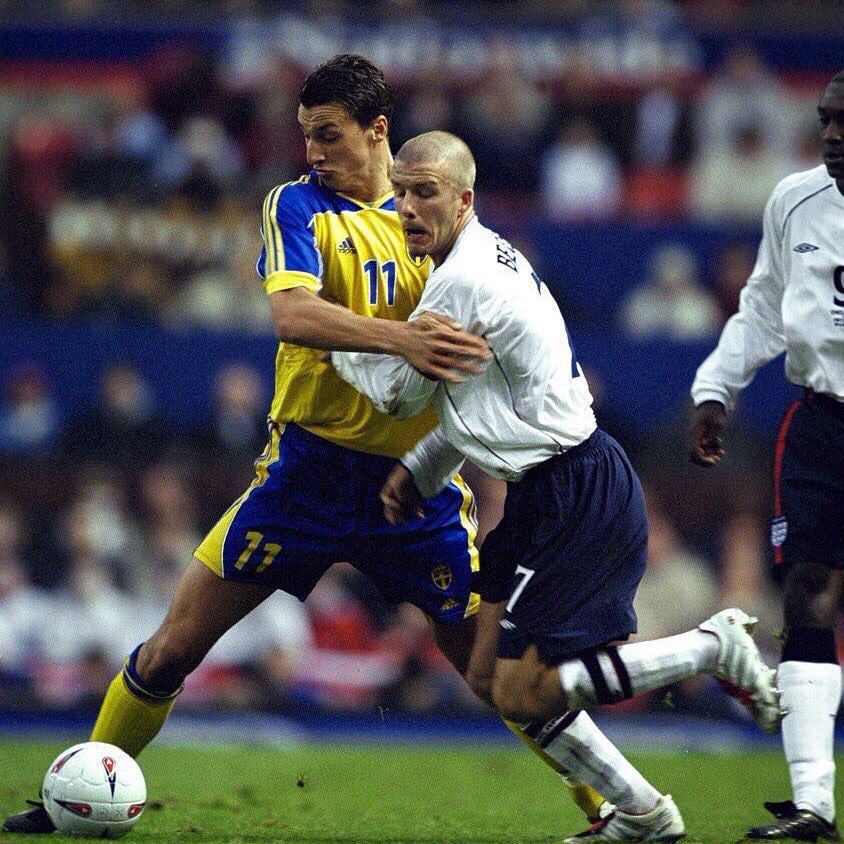 ونشر زلاتان عبر حسابه الرسمي في "أنستغرام" تجمعه صورة بنجم الكرة الانجليزية السابق بيكهام في أحدى المباريات الدولية بين المنتخبين وعلق عليها قائلاً: "أنت يا ديفيد بيكهام إذا فازت إنجلترا بالمباراة فإنني سأدفع لك فاتورة العشاء في إي مكان في العالم تريده ولكن في حال فاز منتخب السويد فيجب عليك أن تشتري لي ما أريد من منتجات شركة إيكيا".