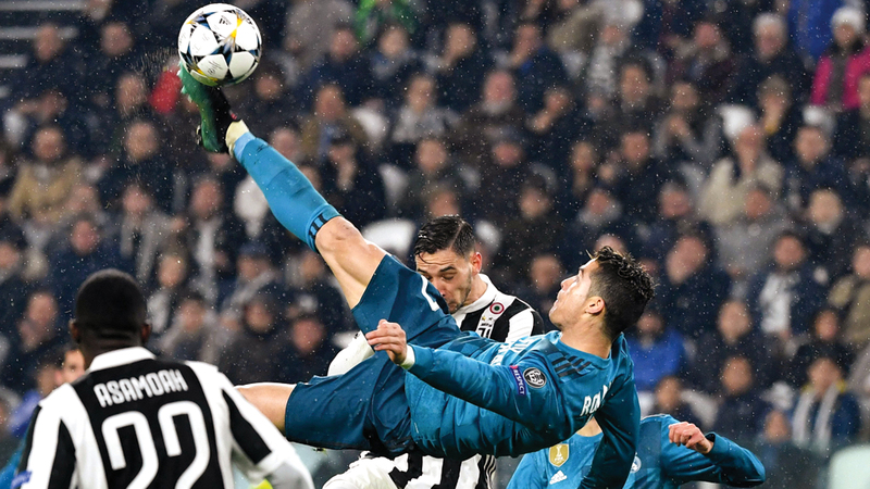 وسجل رونالدو بكرة مقصية أكروباتية هدفاً لمصلحة فريقه السابق ريال مدريد الإسباني، بمرمى فريقه الحالي، في ذهاب الدور ربع النهائي لدوري الأبطال، في هدف اعتبره محللون من الأجمل في تاريخ المسابقة. واختير هذا الهدف الأفضل في مسابقات الاتحاد القاري الموسم الماضي.