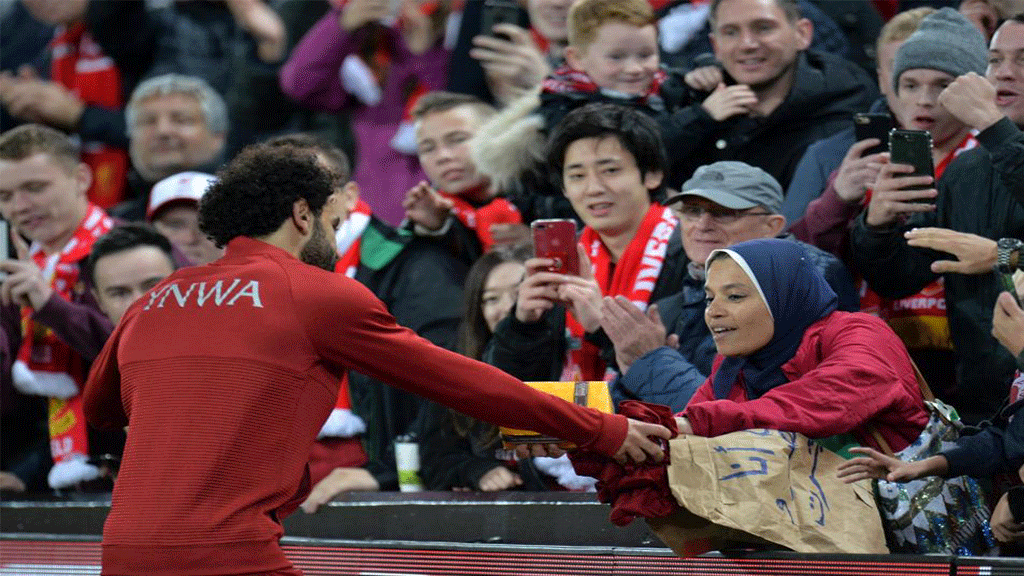 بالصور: مشجعة مصرية تقدم هدية لمحمد صلاح