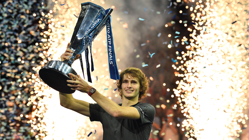 زفيريف يرفع كأس بطولة الماسترز الختامية للتنس. أ.ف.ب