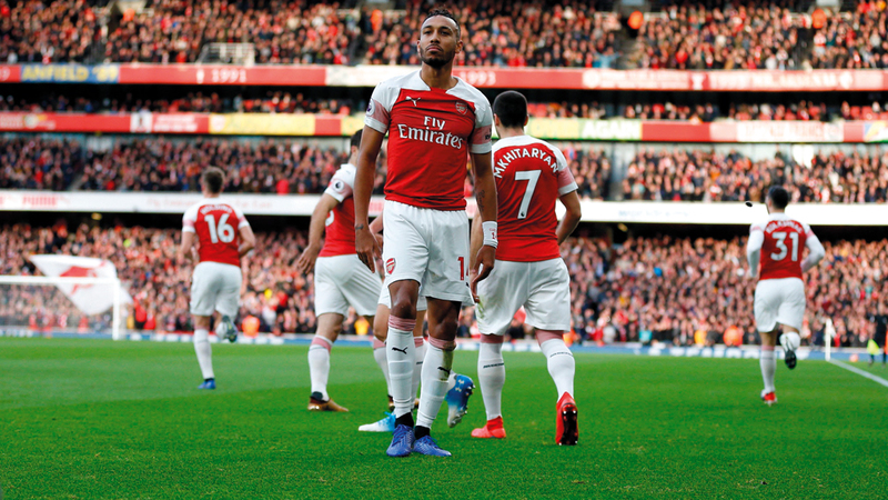 أثناء احتفال اللاعب الغابوني بتسجيل هدف في مرمى توتنهام