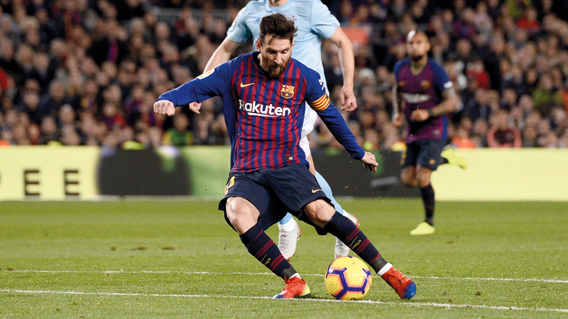 ميسي في مباراة برشلونة وسيلتا فيغو. أ.ف.ب