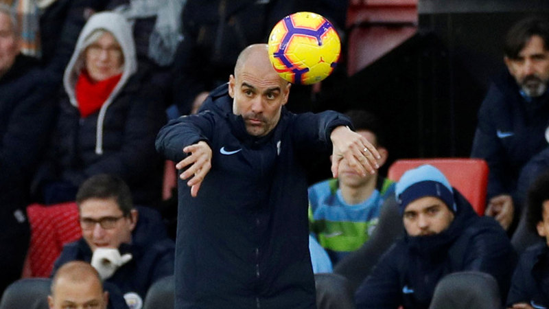 غوارديولا يفكر في طريقة الإطاحة بليفربول وتقليص الفارق إلى 4 نقاط. رويترز