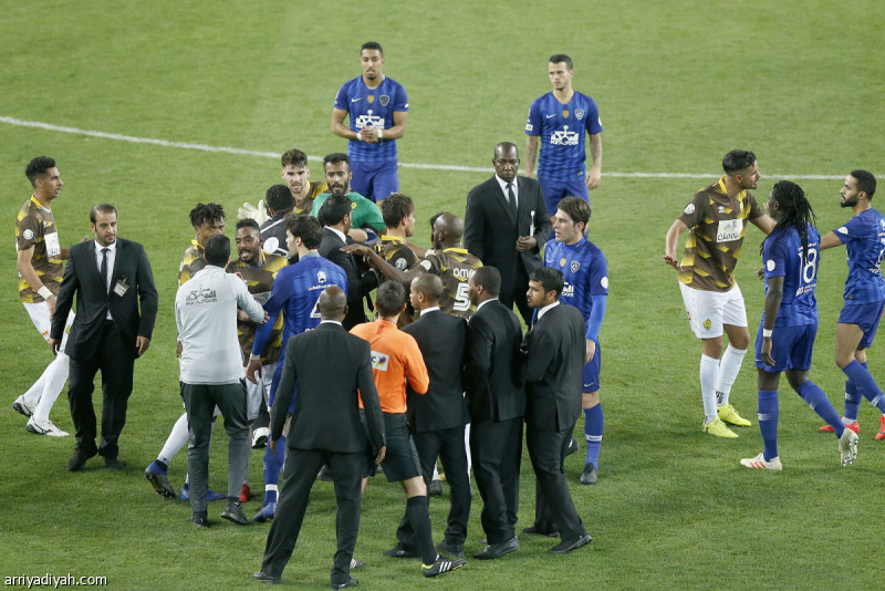 وأشارت صحيفة الرياضية السعودية أن الأحد انتقلت الأحداث إلى بهو ملعب جامعة الملك سعود عقب المواجهة، بتجمهر عدد من لاعبي الفريقين والإداريين أمام غرف اللاعبين، كما فض رجال الأمن عدد من الأشخاص تجمهروا أمام الحكم الروماني أوفيدو هاتيجان الذي أدار اللقاء وأعاقوا وصوله إلى غرفة الحكام داخل الملعب.