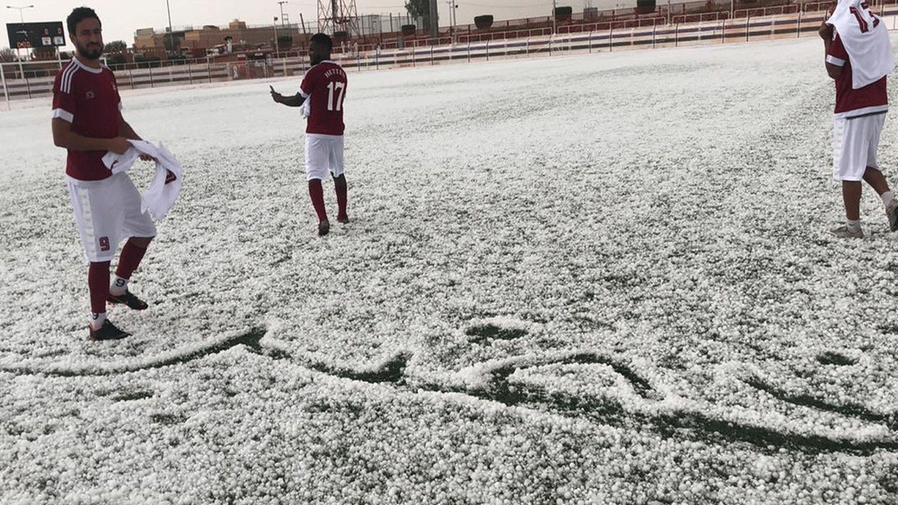 بالصور.. الثلوج توقف مباراة في الدوري السعودي