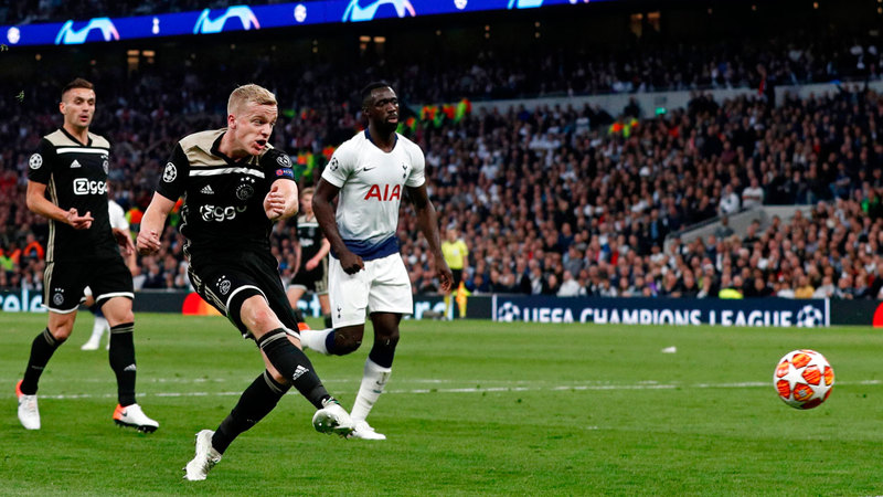 واصل فريق أياكس رحلته المميزة والمثيرة في دوري أبطال أوروبا، بعد أن حقق نصراً مهماً وثميناً بنتيجة 1-صفر، على حساب مضيفه توتنهام في استاد ويمبلي بالعاصمة البريطانية لندن، أول من أمس، في ذهاب نصف نهائي المسابقة. وقدم أياكس كعادته هذا الموسم مباراة مثيرة، وأضاف توتنهام إلى قائمة ضحاياه، بعد ريال مدريد ويوفنتوس. وسجل الهدف الوحيد نجمه فان ديبيك، بعد تمريرة رائعة من المتألق المغربي حكيم زياش في الشوط الأول. ونلقي في التقرير التالي بالضوء على خمس حقائق مثيرة، عن فريق معظمه من اللاعبين الشباب، ويعتبر الأقل في القيمة السوقية بين كل فرق الأدوار الإقصائية في دوري أبطال أوروبا.