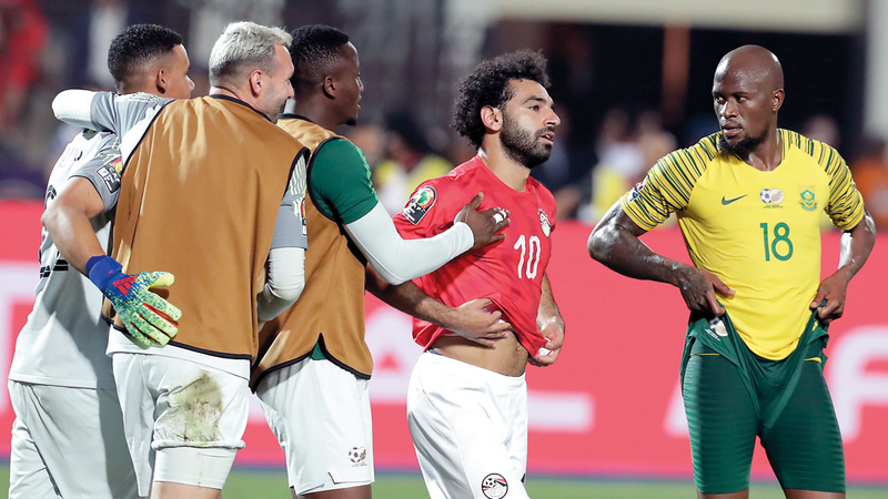 لاعبو جنوب إفريقيا يواسون محمد صلاح عقب خسارة مصر في دور الـ16. إي.بي.إيه