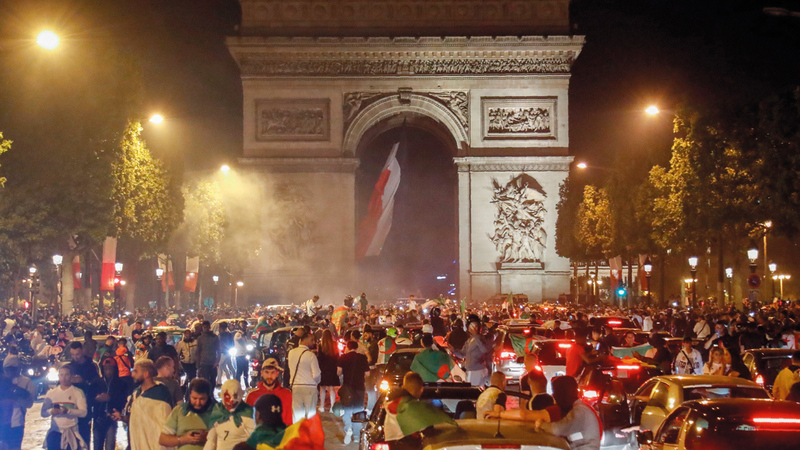 الجزائريون في فرنسا تدفقوا إلى الشوارع للاحتفال بالتأهل. أ.ف.ب
