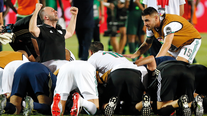 بلماضي يحتفل بالتأهل إلى نهائي أمم إفريقيا. أ.ب