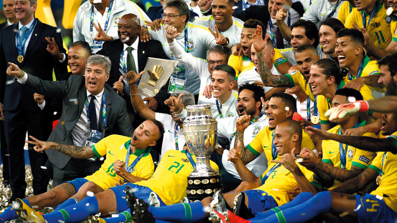 المنتخب البرازيلي متوجاً بكأس كوبا أميركا 2019. أ.ب
