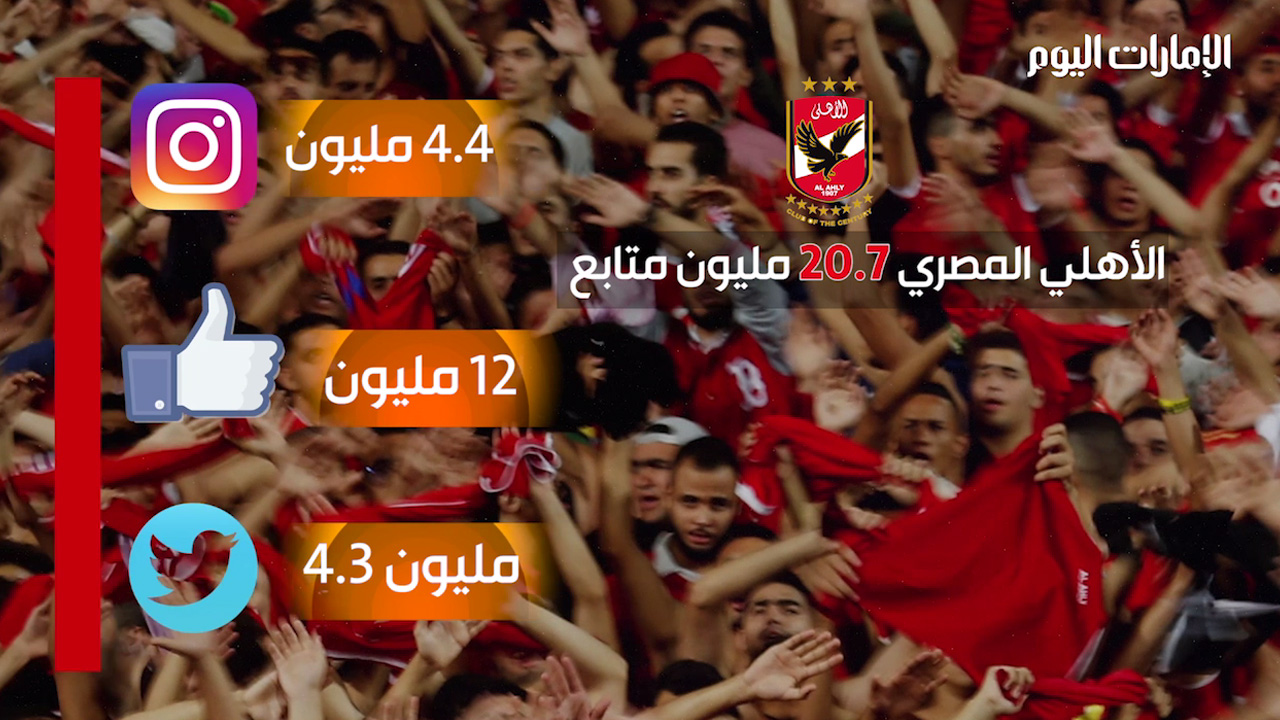 رصدت "الإمارات اليوم" خلال تحقيق أجرته بعنوان: "سوشيال الكرة العربية.. أهداف ضائعة وشبكة بلا حارس"، أكثر 10 أندية عربية متابعة على مواقع التواصل الاجتماعي "تويتر وفيسبوك وإنستغرام" تصدرها النادي الأهلي المصري ب"20.7 مليون متابع"، يليه الهلال السعودي "11.2 مليون متابع"، ثم الزمالك المصري "10.7 مليون متابع"، فيما احتل نادي العين الترتيب العاشر ب"820 ألف متابع".