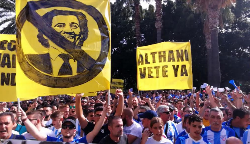 تجمهر عدد من مشجعي فريق ملقا الإسباني أمام ملعب الفريق لاروزاليدا، لتطالب برحيل المالك القطري عبدالله آل ثاني، بسبب سوء نتائج الفريق وعدم تحقيق الوعود التي أطلقها بإعادة الفريق لدوري الدرجة الأولى.