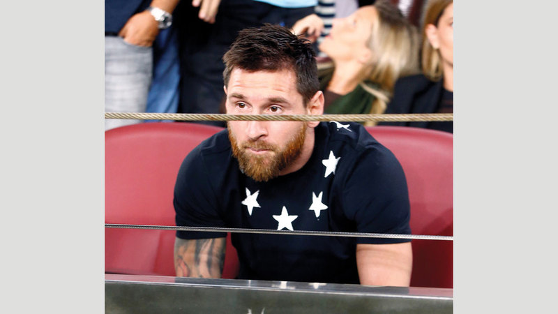 ميسي تابع مباراة برشلونة وفالنسيا من المدرجات. إي.بي.إيه