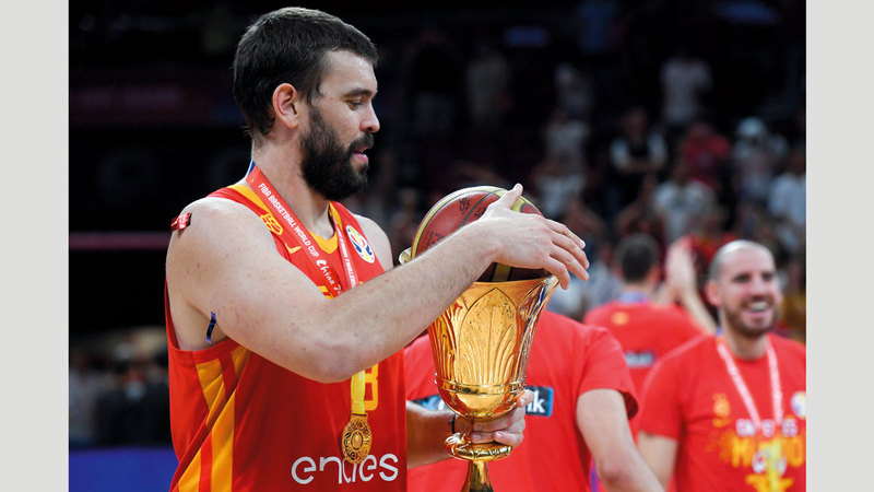 غاسول حقق إنجازاً نادراً بفوزه بكأس العالم ودوري السلة الأميركي. أ.ف.ب