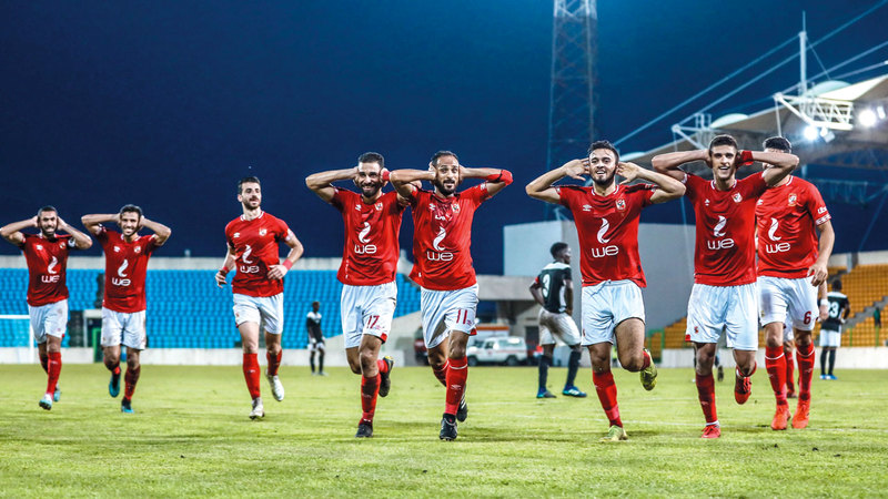 لاعبو الأهلي يحتفلون بالفوز على كانو سبورت. من المصدر