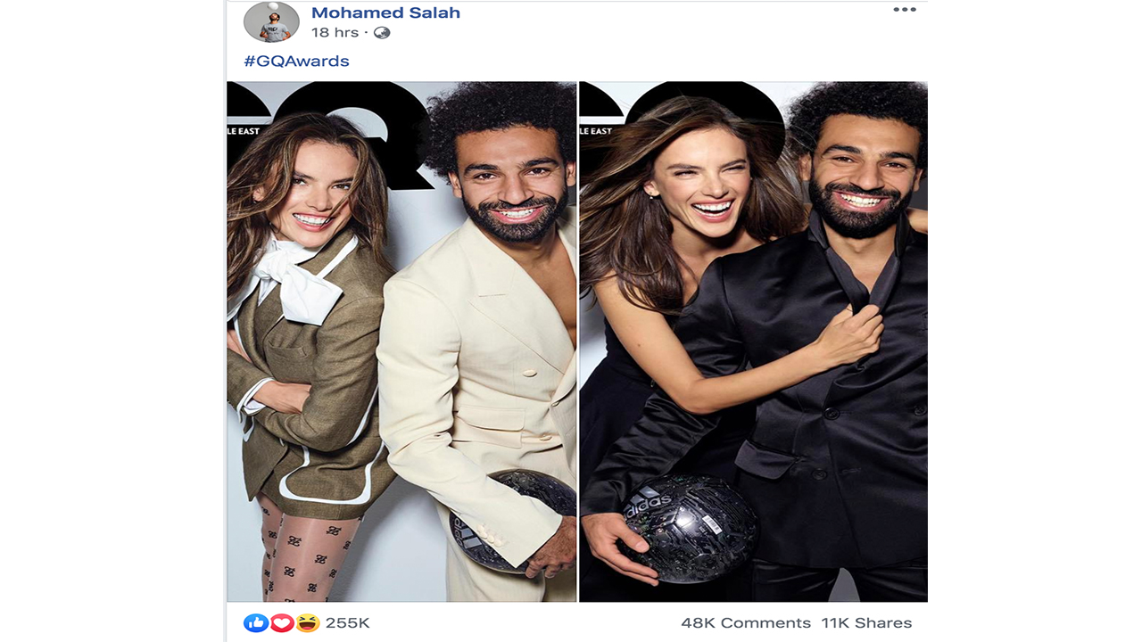 وكان النجم المصري قد تصدر غلاف مجلة “جي كيو” الشهيرة، في صور تجمعه مع عارضة الأزياء البرازيلية أليساندرا أمبروسيو، وهو ما أثار الجدل على اللاعب خاصة في إحدى الصور التي تحضن فيها عارضة الأزياء اللاعب المصري من الخلف.