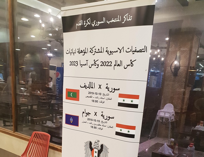 يذكر أن الاتحادان الآسيوي والدولي لكرة القدم يفرضان حظراً على الملاعب السورية إن كان على صعيد الأندية أو المنتخبات منذ نحو ثماني سنوات بسبب الأزمة التي تعيشها البلاد، فطلب الاتحاد السوري أن تكون الإمارات أرضاً لـ"نسور قاسيون" في التصفيات، ورحب الاتحاد الاماراتي بذلك.
