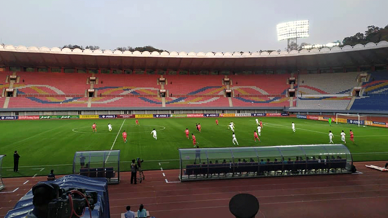 وتواجه بلدان في حالة حرب عمليا على ملعب "كيم إيل سونغ" في مباراة غير منقولة، دون جماهير كورية جنوبية أو حضور إعلامي أجنبي.