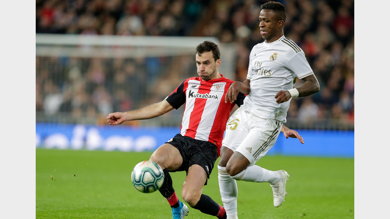 فينيسيوس ضيع فرصاً محققة أمام مرمى بلباو. أ.ب