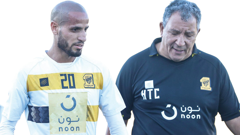 تين كات مع لاعبه الأحمدي خلال تدريبات الاتحاد. من المصدر