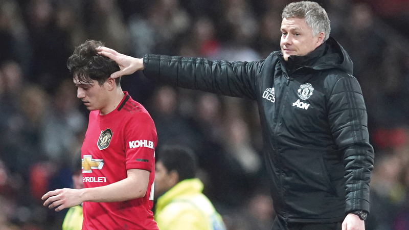 مدرب مان يونايتد سولسكاير يخفف من وطأة الهزيمة على لاعبه دانيال جيمس. أ.ب