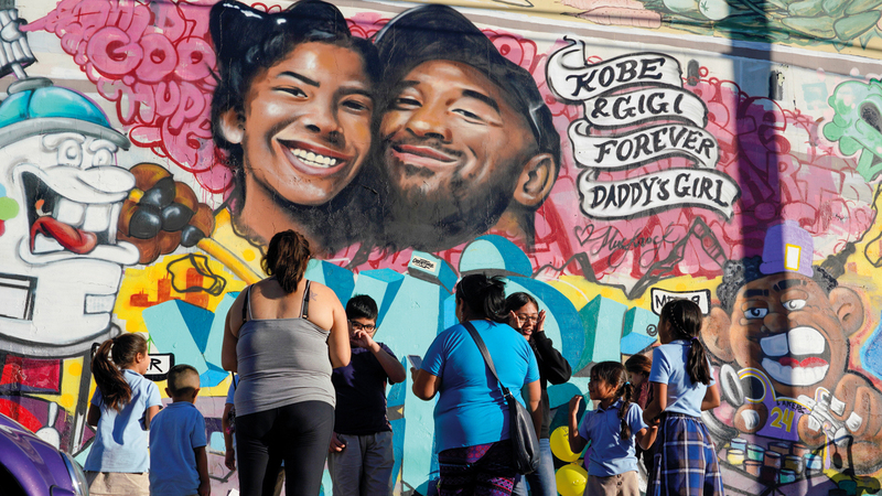 صورة براينت وجانا على الأبنية والحوائط في كاليفورنيا. رويترز
