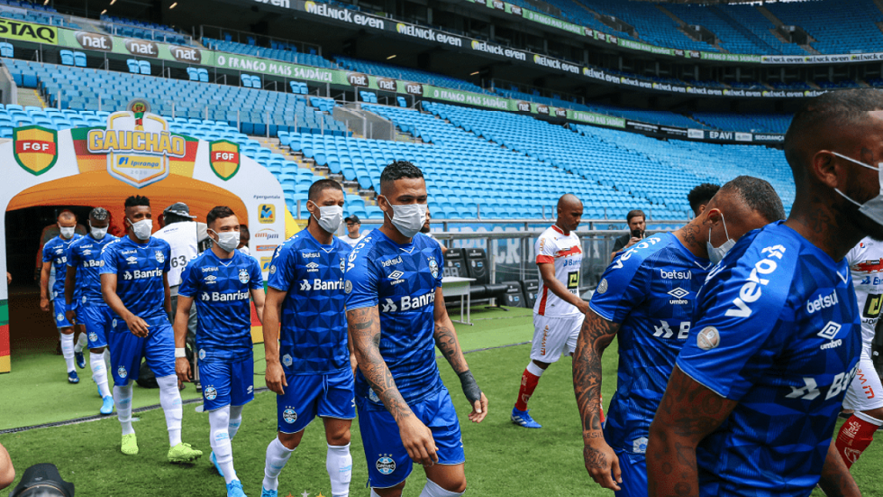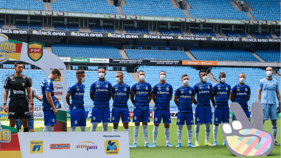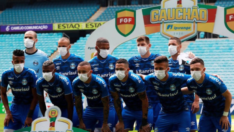 ابتدع فريق غريمبو البرازيلي طريقة جديد للإعتراض على استمرارية الدوري وعدم توقفه بالرغم من انتشار فيروس كورونا في البلاد، إذ لم يجد اللاعبون طريقة سوى النزول إلى أرض الملعب وهم يرتدون الكمامات.