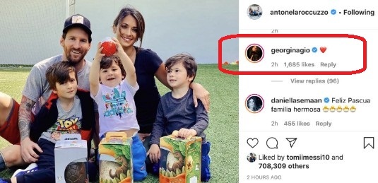 قامت جورجينا رودريغيز، صديقة النجم البرتغالي كريستيانو رونالدو ، بعمل رائع لم يقم به اللاعب البرتغالي مع منافسة الأزلي ليونيل ميسي، إذ تبادلا الحصول على الكرة الذهبية 10 سنوات متتالية، وذلك خلال احتفال اللاعبين مع أسرهما بعيد الفصح.