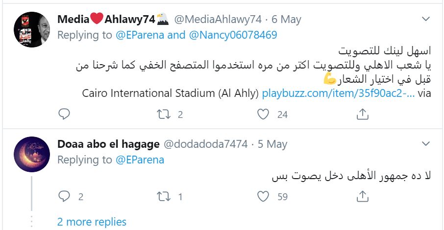 من جهته، قال المشجع محمد ثروت: "الصحيفة دي بتلعب على وتر الاهلاوية وعارفين انهم هيزودا الترافيك"، فيما ذكر المشجع محمد شعاب بأن "استفتاء أجمل شعار في العالم يثبت حقيقة واحدة ان جمهور الاهلي أضعاف أضعاف جمهور الزمالك مع جمهور الرجاء المغربي مجتمعين".