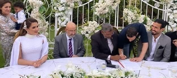بالصور.. عقد قران لاعب إنبي على الإعلامية الأهلاوية شيما صابر