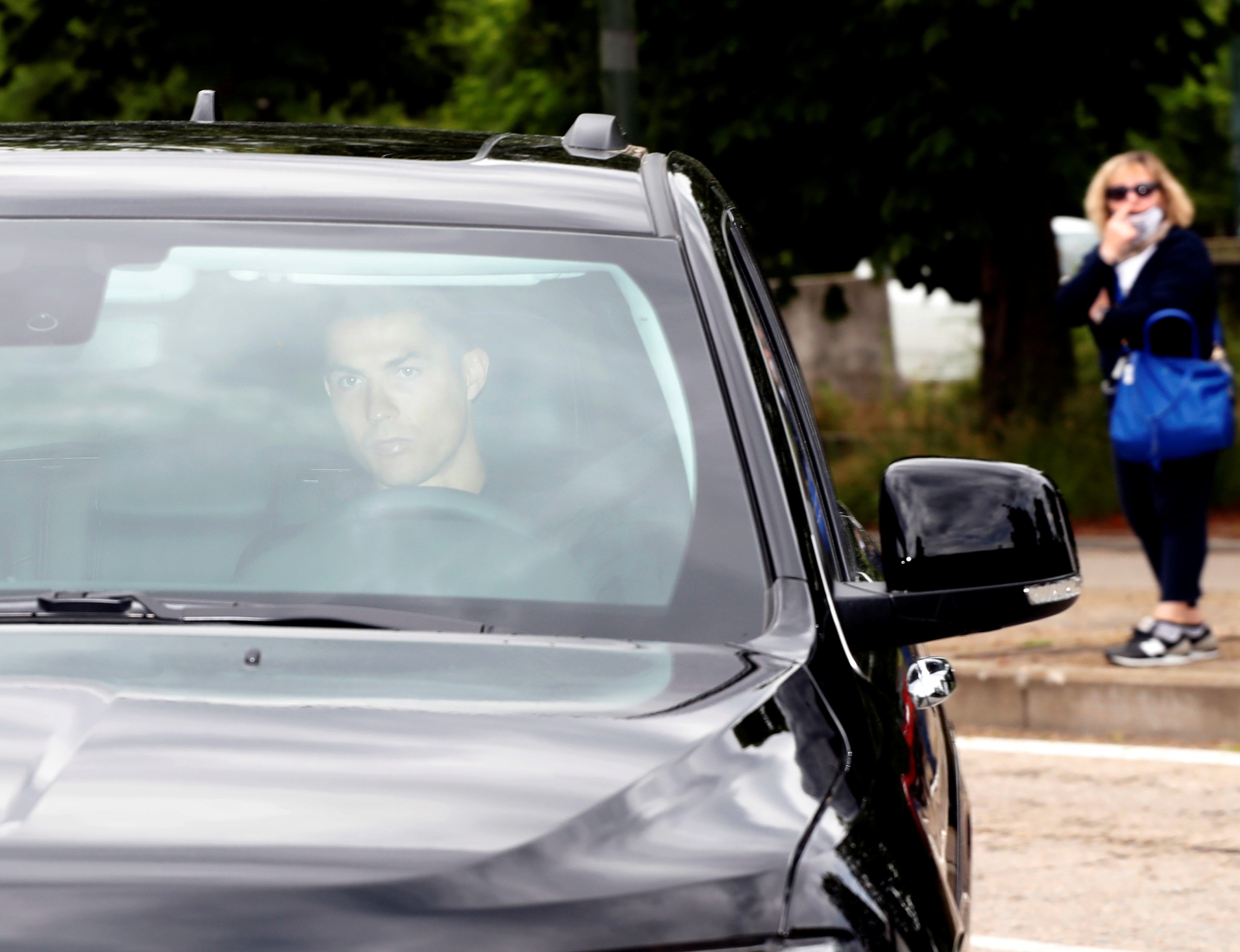 رونالدو خلال الوصول إلى مقر التدريبات بسيارته.