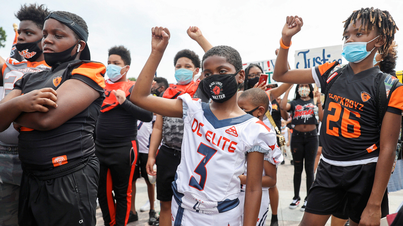 أطفال يتظاهرون ضد العنصرية في أميركا. رويترز