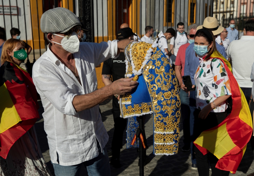 في إشبيلية، شارك العديد من مصارعي الثيران مثل خوان أنطونيو رويز المعروف باسم "إسبارتاكو" ومانويل خيسوس المعروف باسم "إل سيد" وميغيل باييز المعروف بـ"إل ليتري" في التظاهرة التي جمعت ألف شخص من الساحات.