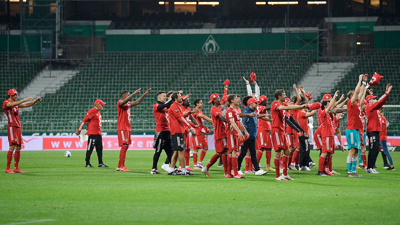 نجوم بايرن ميونيخ يحتفلون بلقب الدوري أمام المدرجات الخالية. إي بي إيه