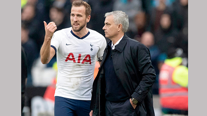 مورينيو مع نجم توتنهام هاري كاين. من المصدر