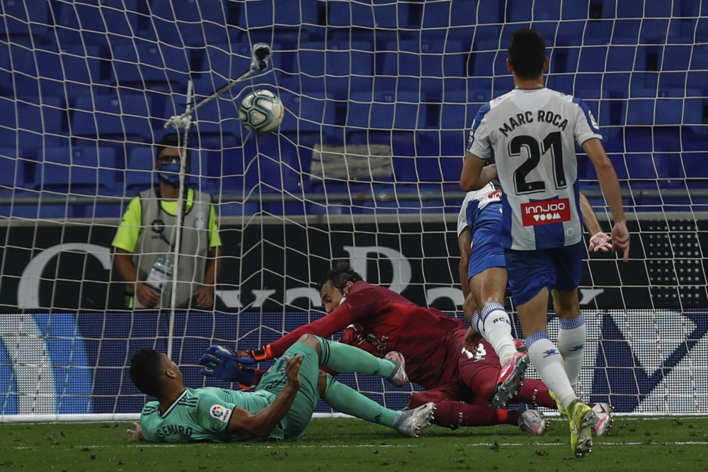 وحقق ريال مدريد الفوز على إسبانيول لينفرد بصدارة الدوري الإسباني بفارق نقطتين أمام غريمه برشلونة الذي تعادل مع سيلتا فيغو 2 - 2 السبت الماضي في المرحلة نفسها.