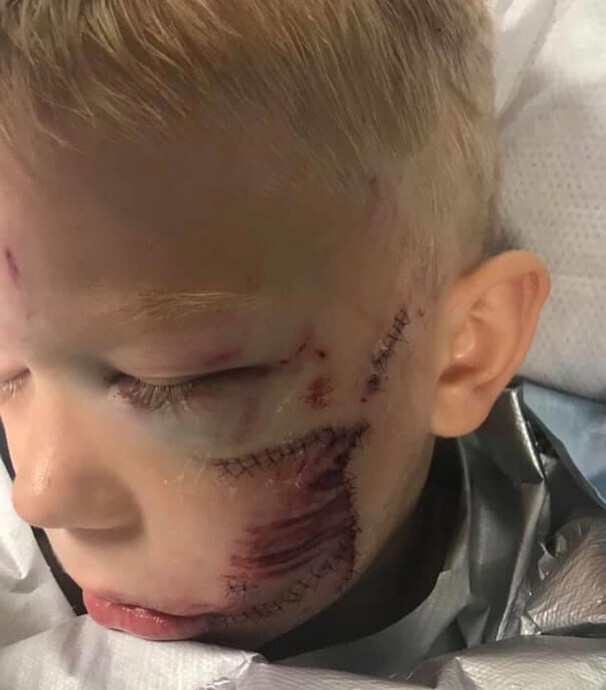 وتداولت مواقع التواصل الاجتماعي، اليوم الجمعة، صوراً للطفل إلى جانب شقيقته التي تصب بمكروه، لكنه في المقابل عانى تشوهات في الوجه إثر تعرضه لعضات الكلب الشرس لاسيما في خده الأيسر.