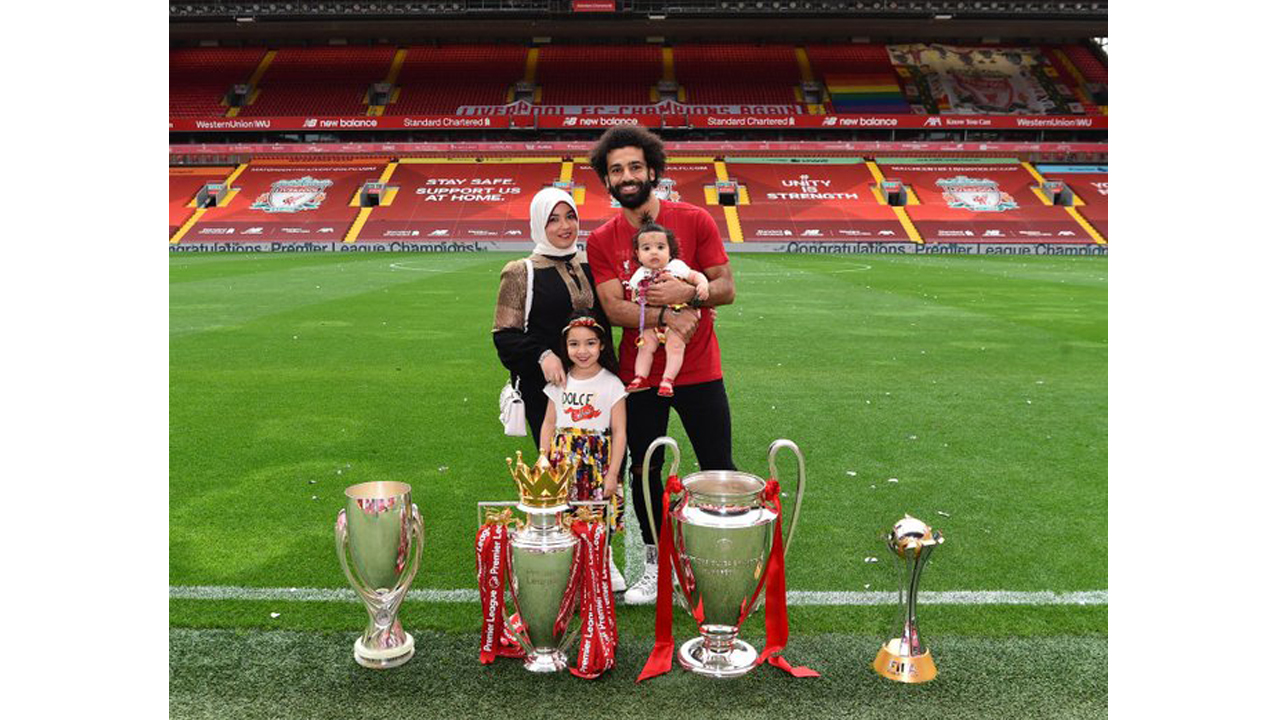 وظهر محمد صلاح خلال مجموعة الصور هو وعائلته في ملعب الأنفليد مع الأربعة كؤوس وهي دوري أبطال أوروبا والسوبر الأوروبي، وبطولة العالم للأندية والدوري الإنجليزي، وتواجدت زوجة محمد صلاح، ومكة وكيان التي تواجدت لأول مرة في حسابات اللاعب الرسمية على مواقع التواصل الإجتماعي منذ أن ولدت من عام تقريباً.