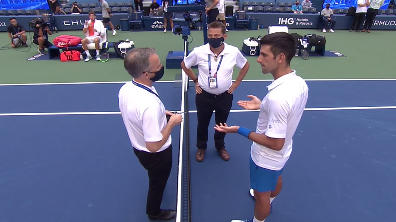 ورغم تأكيد ديوكوفيتش أنه لم يقصد ضرب الكرة في مراقبة الخط، فإنه استبعد في نهاية المطاف، وصافح النجم الصربي منافسه كارينيو بوستا، وغادر الملعب بخطوات متثاقلة.