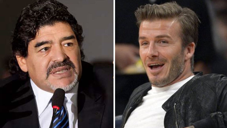 علق مرة مارادونا على النجم الانجليزي السابق ديفيد بيكهام، وقال عنه: كان دائما منشغلا أكثر بفرقة (سبايس غيرلز"، لكنه أحيانا يجد بعض الوقت للعب الكرة". ووجه كلمة إلى حارس منتخب إنجلترا بيتر شيلتون، الذي سجل عليه "هدف اليد" الشهير في 1986، وقال: سأقول لك سرا يا شيلتون، سجلت الهدف بيدي".