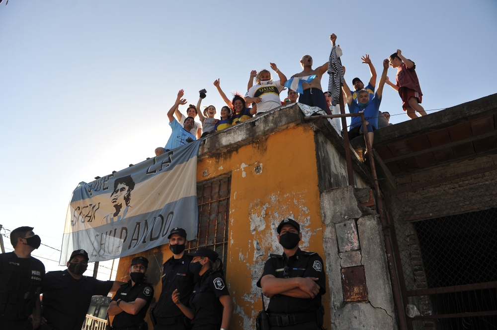 ألقت الارجنتين بشيبها وشبابها النظرة الاخيرة على نعش بطلها واسطورتها الخالدة دييغو أرماندو مارادونا الذي انطلق موكب جنازته بعد ظهر أمس، قبل ان يوارى الثرى في احد مدافن ضواحي العاصمة بوينوس أيرس بجاوري قبري والديه، وسط اشكالات داخل القصر الجمهوري، فيما سجلت صدامات مع الشرطة في الشوارع المحيطة.