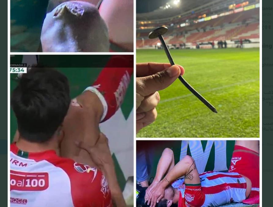 وتبين أن المسمار الملقى في الملعب مصدره إحدى اللافتات الإعلانية إذ سقط منها دون أن يكتشفه أحد حتى لحظة إصابة اللاعب بتمزق خطير أدى إلى استبداله من الملعب على الفور.
